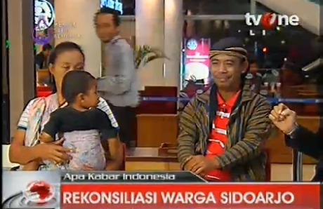 "Saya Hari Suwandi sekeluarga memohon maaf sebesar-besarnya kepada keluarga besar Aburizal Bakrie, khususnya Bapak Aburizal Bakrie, yang mana dalam perjalanan saya dari Porong sampai ke Jakarta, saya banyak mencemarkan nama baik Aburizal Bakrie. Oleh sebab itu, saya sebagai manusia biasa, tak luput dari salah, sekali lagi saya ucapkan mohon maaf kepada Bapak Aburizal Bakrie, memohon maaf kepada semua keluarga besar Aburizal Bakrie dan saya ucapkan banyak-banyak terima kasih kepada keluarga Bakrie. Karena hanya keluarga Bakrielah yang bisa menyelesaikan semua permasalahan di Sidoarjo," katanya sembari terisak.